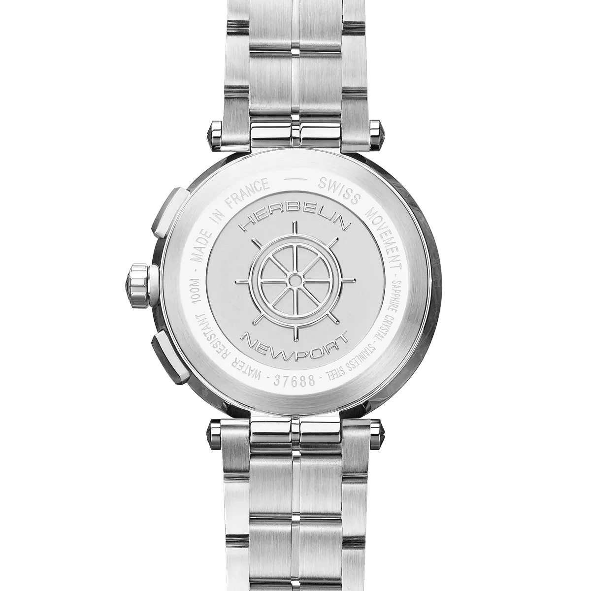 Sous les vagues tumultueuses de l'Atlantique, où les voiles françaises ont forgé des triomphes indélébiles en 1989, pulse l'essence de la Newport Chrono 37688B35. Née pour honorer la victoire à la Newport Yacht Club Cup, cette montre Michel Herbelin transcende les tempêtes du temps comme une coque indomptable. Son boîtier rond de 43 mm en acier inoxydable 316L, aux finitions alternant poli miroir et brossé satiné, évoque la silhouette racée d'un yacht d'exception : affirmée, aérienne, prête à chronométrer les éclats fugaces de la vie, avec une entrecorne de 22 mm pour un ajustement fluide et généreux au poignet masculin.