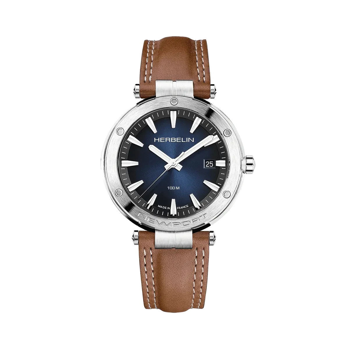 Au centre de cette vigie marine, un cadran bleu dégradé intense déploie une profondeur veloutée, comme les abysses d'un horizon sous le soleil couchant, rythmé par un guichet date à 3 heures qui veille avec discrétion sur les jours qui s'écoulent. Les index et aiguilles rhodiées tracent leur voie avec une précision poétique, tandis que l'inscription « NEWPORT » à 6 heures murmure le nom du port mythique de Rhode Island. Animée par un mouvement quartz suisse calibre 715 (11 ½ lignes), elle offre une fiabilité inébranlable, un tic-tac serein qui mesure les régates rêvées ou les heures urbaines, en hommage à l'indépendance farouche de la maison Herbelin, ancrée à Charquemont depuis 1947.