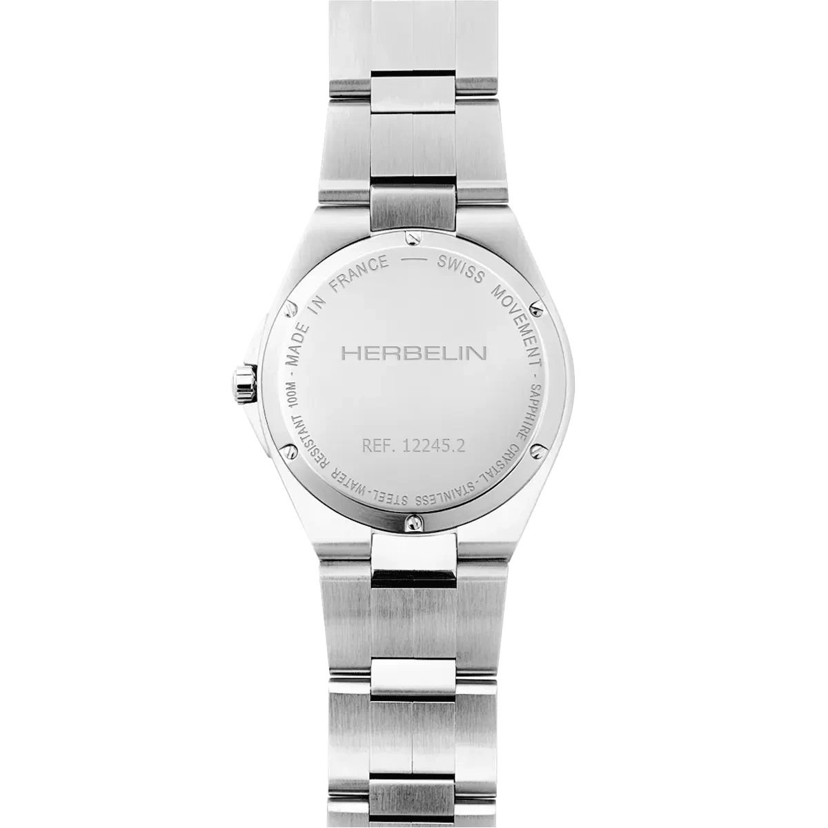 Le bracelet acier intégré, dessiné spécialement pour épouser le boîtier, offre un tombé parfait et un confort exceptionnel (150 g seulement). Boucle déployante double sécurité. Étanchéité 100 mètres : prête pour la baignade, le snorkeling ou simplement la vie quotidienne sans crainte.